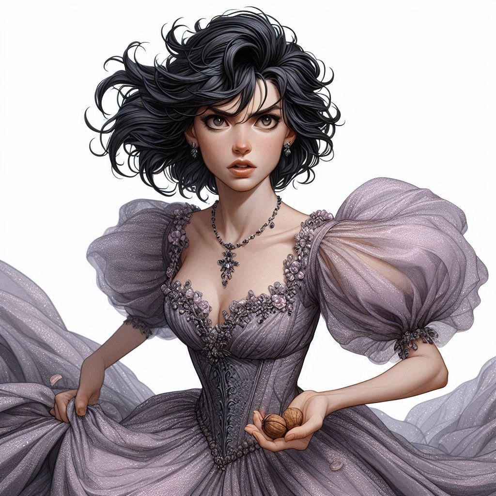 The next day, Katie broke her sister’s curse with three waves of the wand. She offered to watch the prince again if the king would promise her his son’s hand in marriage. That night she heard the fairies at the ball talking again. “Did you know the bird that that baby fairy is playing with would break the prince’s dancing curse in three bites?” Again Katie rolled the nuts to distract the baby fairy and grab the bird.
